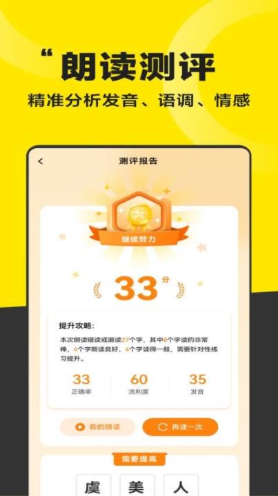 3、智能互动:ai老师全程陪伴,不仅能评分纠错,还能智能推荐薄弱环节强化练习,实现个性化晨读方案。