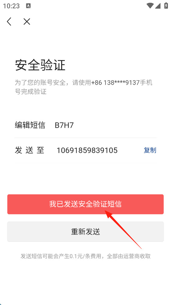 11、发送验证短信,随后点击“我已发送安全验证短信”。