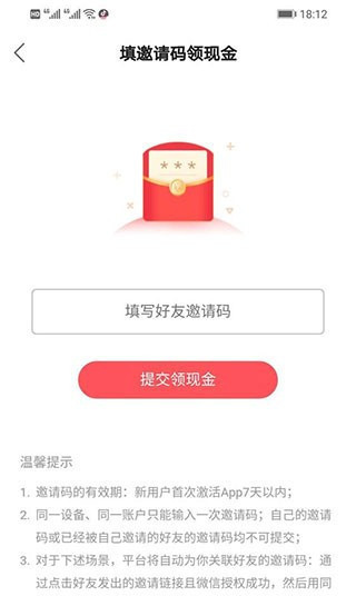 3、在输入框,输入好友的快手极速版邀请码;点击【提交领现金】,领取最高56元现金。