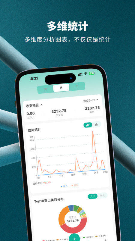 1、智能统计:清晰饼图图表展现各类支出收入,结余和汇总信息,账目心里更有底。