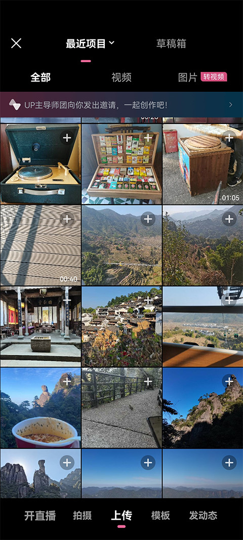 2、投稿分为视频以及图片两种方式,同时导入多张图片还可以制作成视频哦。