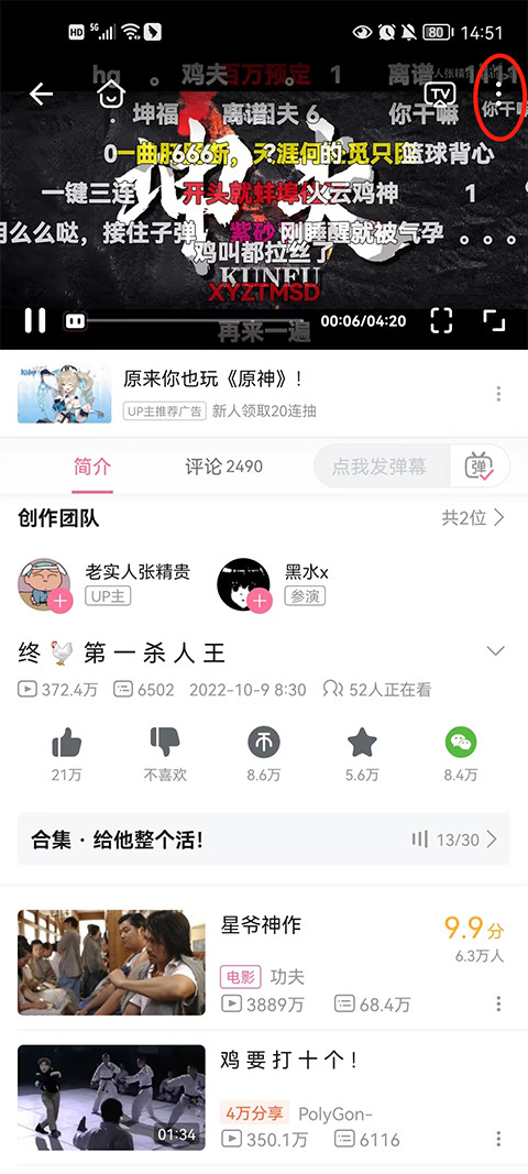 2、在点击视频区域,在视频的右上角有三个点符号,打开它。