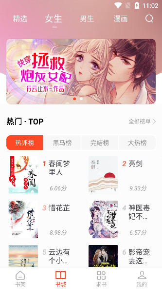 1、打开软件点击书城可以看到多种题材的小说资源