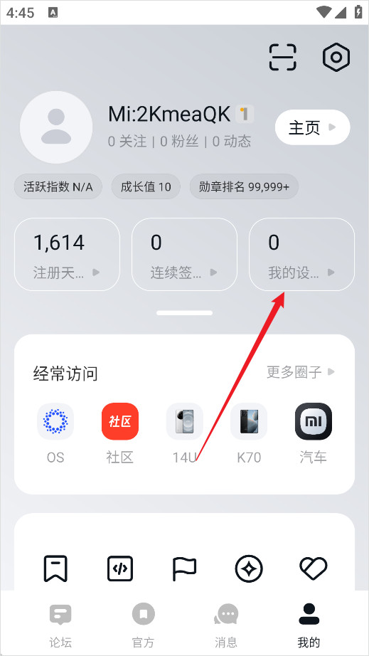 1、打开小米社区,点击右下角的“我的”;