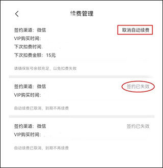 Tips:如图所示显示签约已失效即可,后续就不会再自动扣费了哦~