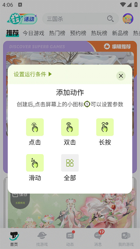 3、自动滑动:可设置滑动手势、滑动时长、循环次数、循环间隔等