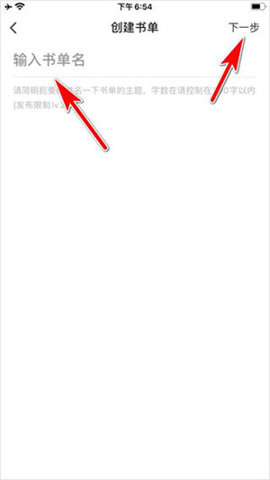 4、输入书单名后,点击右上角下一步的按钮即可创建书单。