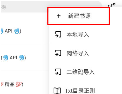 之后在书源管理页面中,我们点击手机中的【菜单】按键,就会在右上角弹出菜单页面,然后你就会看到新建书源了。