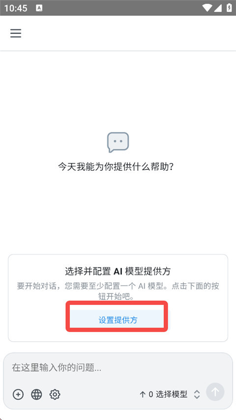 6、打开Chatbox AI APP,点击【设置提供方】。
