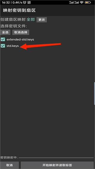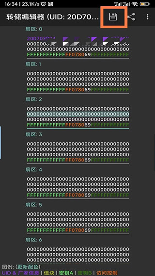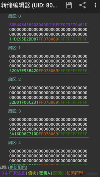 4、选择新建的密钥文件对卡进行读写,读取出卡的数据可以保存到手机中