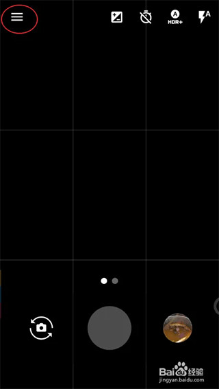 1、进入相机后是黑屏状态,点击左下角的切换到前置摄像头,切换后点击左上角的三。