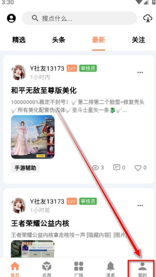 1、首先下载并安装CY社区,安装完成后打开app进入到主界面。