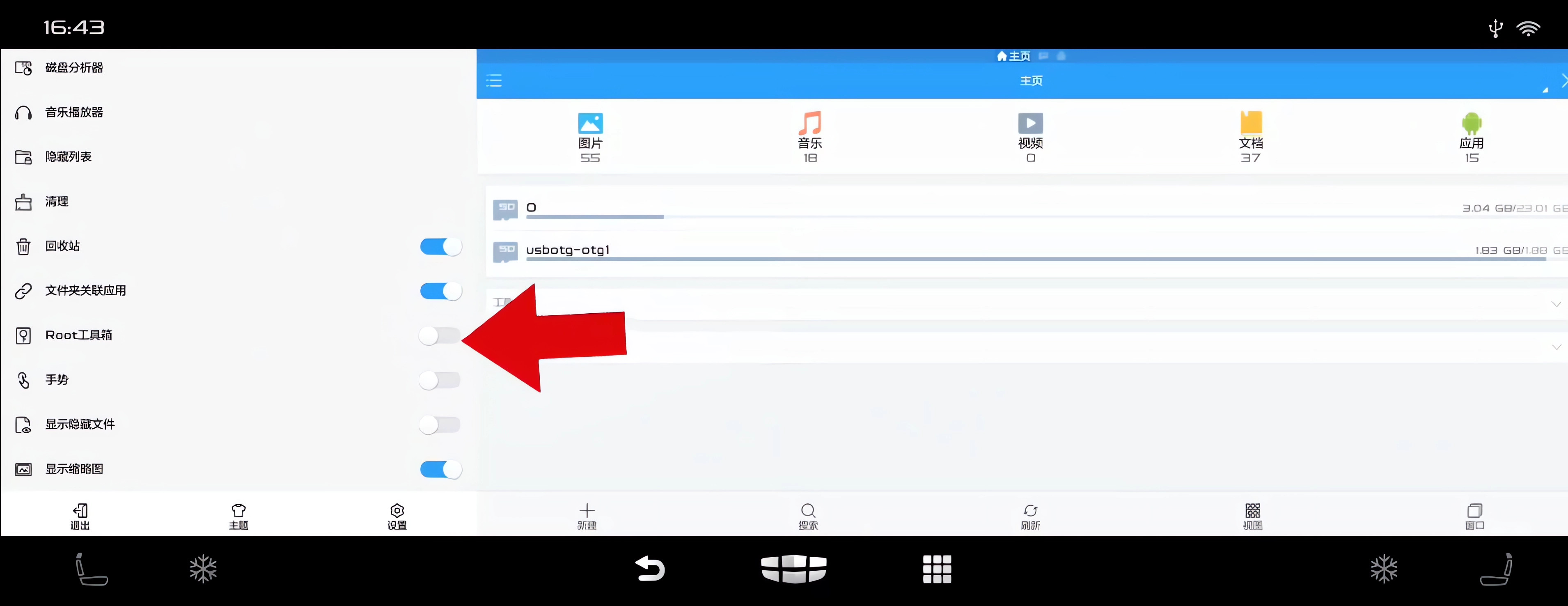 2、第一次安装的话,左边找到ROOT工具,打开开关。