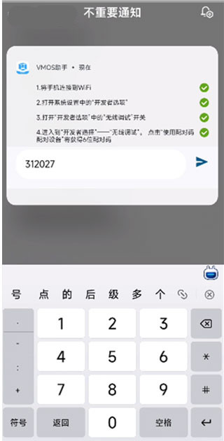 5、在通知栏中找到推送信息,输入刚刚的配送码,点击确定即可完成激活