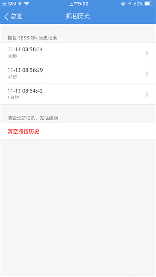 2、点击抓包历史,可以看到抓包的历史记录数据。