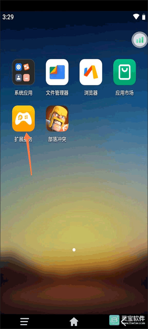 1、我们先进入到云手机的界面,可以看见我们桌面上有一个拓展服务,点击它。