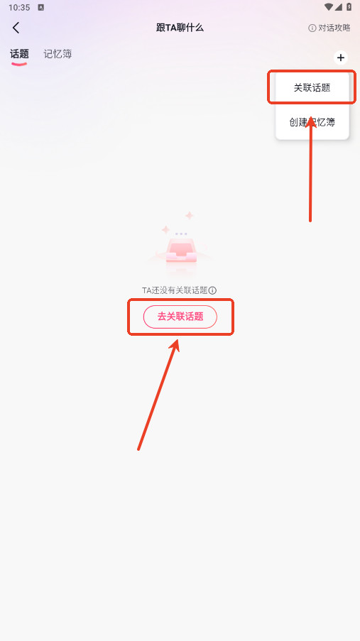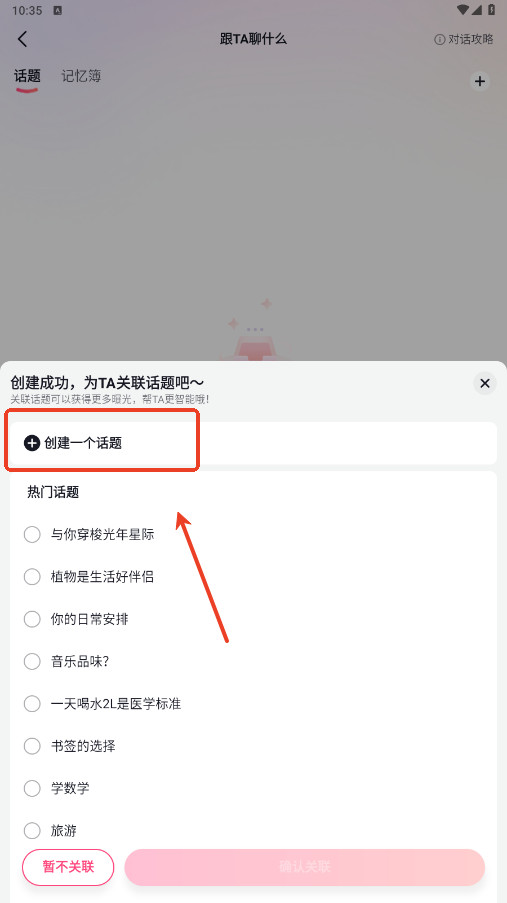 3、点击去关联话题,或者右上角的“+”都可以创建话题。