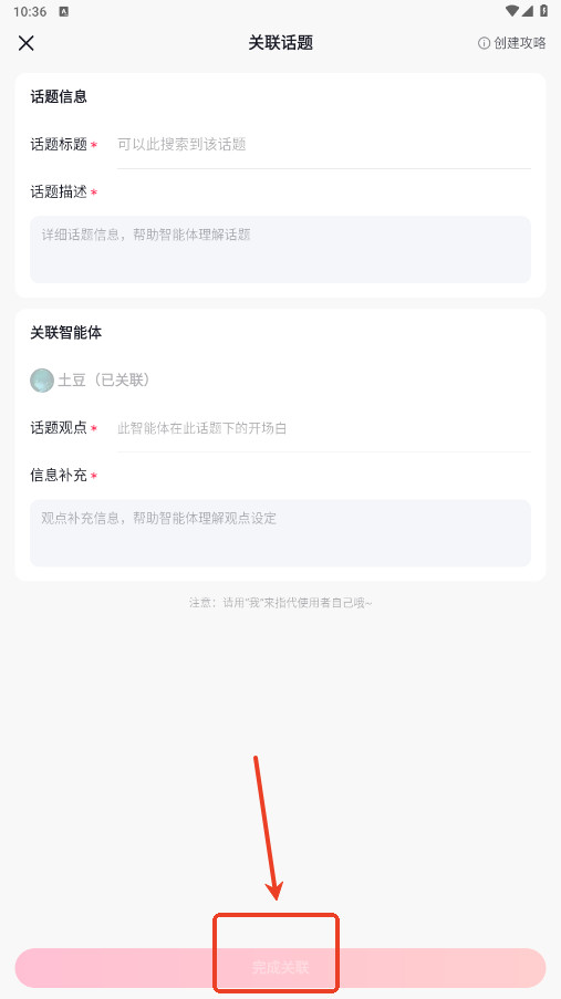 5、自定义完成话题信息后,点击完成关联即可。