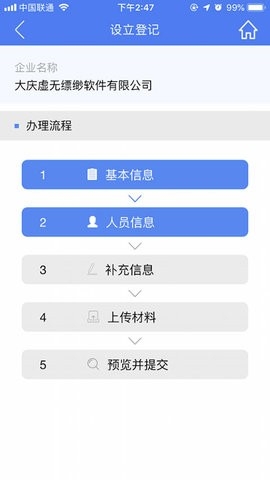 1. 企业设立:支持在线填写企业基本信息、上传相关材料,完成企业设立登记。