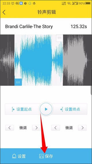 4、在打开的铃声编辑界面,可以剪辑铃声,点击底部的保存。