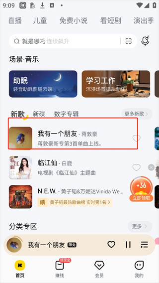 4、除此之外酷我音乐app除了这些功能外还可以赚点零花钱点击旁边的小金币