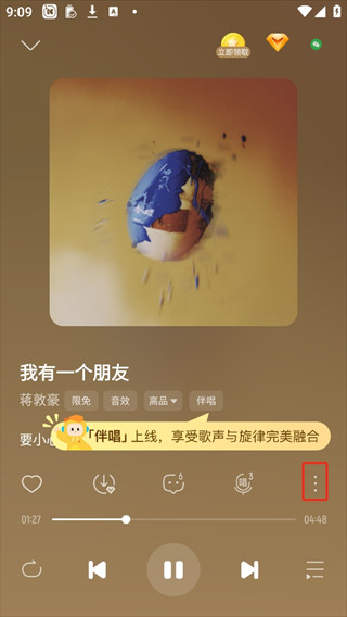2、在播放界面中,点击靠近右下角的三个点。