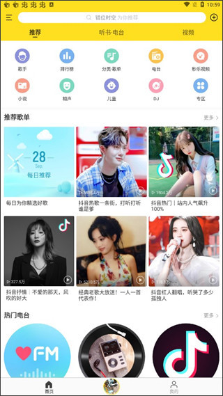 1、在主页中有很多不同类型的歌曲都可以听;