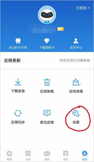 进入应用商店页面,点击【管理】进入页面后,再点击头像,就可以进入vivo账户了。