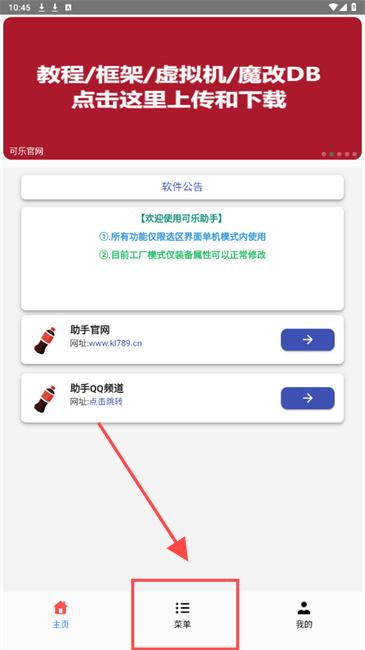 1.先打开可乐助手选择【菜单】进入