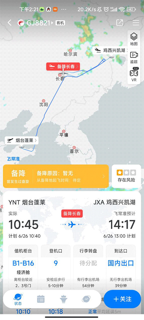 5、那么现在你就可以查看该航班的动态了,甚至还可以查看飞机的飞行轨迹等信息