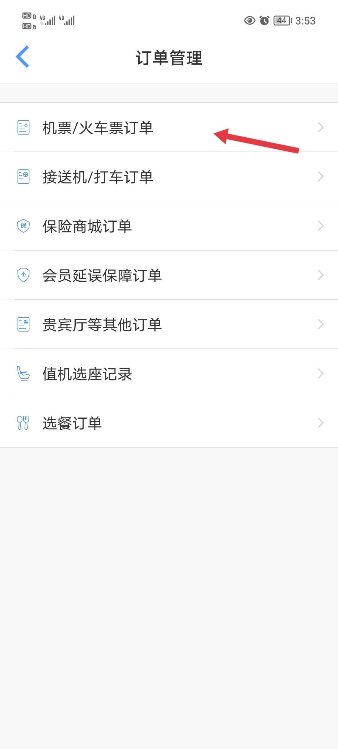 2、在订单管理中选择机票订单。