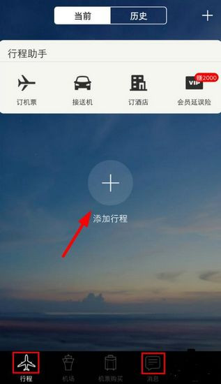 1、打开软件,首页便是“行程”,点击屏幕中间的“添加行程”