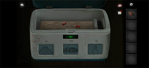 根据图片中的线索调整盒子上的三个图案,破解后打开盒子获得图钉道具。