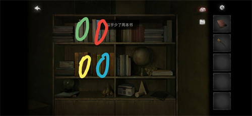 将红色的书和黄色的书插入书房的书柜对应位置,完成基础的道具摆放。