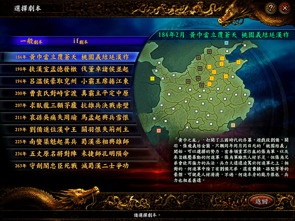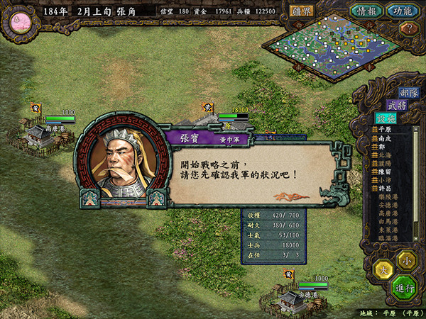 4、三顾茅庐(下):本剧情只要在上半个剧情完成后,在接下来的战略面里让刘备继续前往隆中港探索即可。