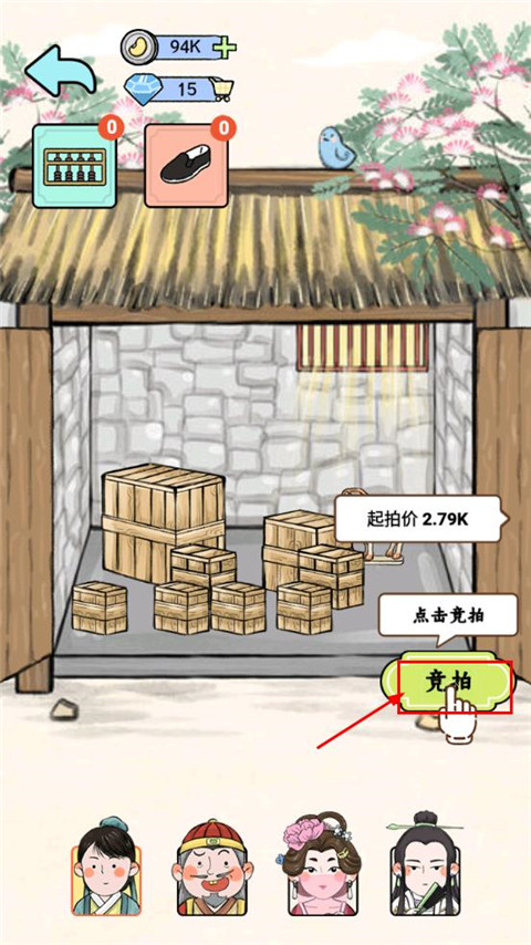 2、选择官府拍卖,一天只有三次拍卖的机会。