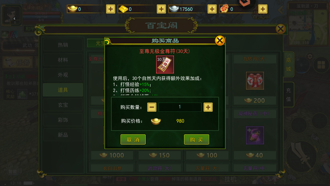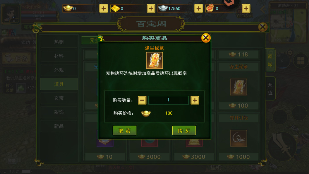 2. 除了主线任务,平时还能接到悬赏、跑环这些不同类型的任务,完成之后能拿到银两、强化石这些材料。