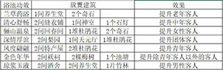 ①大温泉全功效,小温泉缺了个金色年华,楼主试了下四个温泉全功效和下面这个布局感觉没差别。