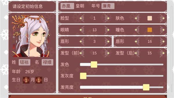 2、这里可以设定初始信息,如姓名,年龄、还可以自定义脸型、眼睛、眉形等;