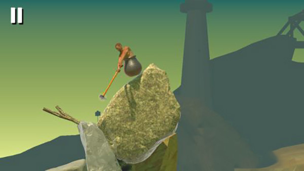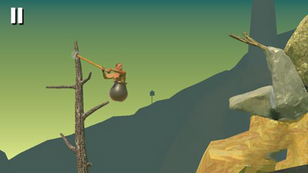 5、随后,会碰到一个短的树枝,方法和上面的一样,需要先猛的锤一下下面的石头,在腾空时,马上勾住树枝,就顺利通过了。