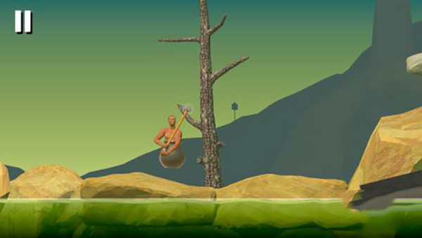 2、在接下来会有一棵树,我们让锤子勾住树枝,前提必须快。