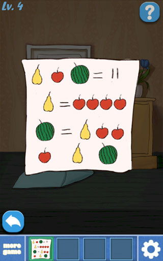 查看这张纸,推算苹果,梨子,西瓜代表的数字,计算出苹果=1,梨子=4,西瓜=6