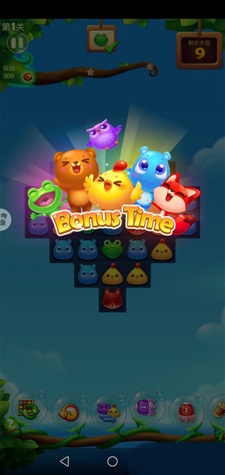 (3)5+4(魔鸟+直线或爆炸)特效混合使用一次得分2000,每个被变化动物增加200分,每消除掉一个普通的小动物得到15分,冰块则可以得到1500分。