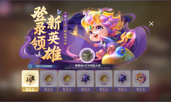 活动期间,登录游戏,即可获得新英雄敖璃(12月27日05:00后开启商城直售)、皮肤碎片、英雄碎片等奖励。累计登录七天更可获得播报自选箱