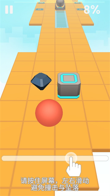 4、操作简单、一键式上手,只需左右移动小球避开障碍物、陷进等不要松手。