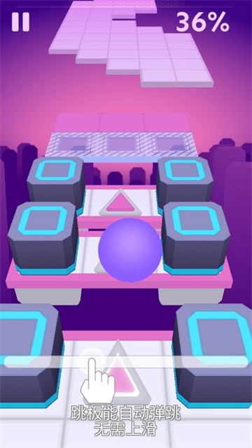2、在这里拥有独一无二的动感音乐,玩家们可以根据音乐的节奏去操纵小球,让其更快的完成挑战