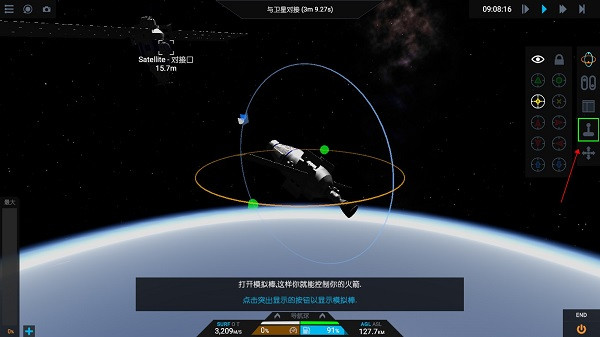 3、现在把你的火箭锁定在目标上,具体方法点击屏幕右侧的按钮以显示导航球面板。