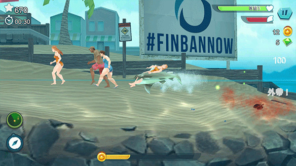 3、对弱点冲刺攻击。攻击成功,螃蟹会暂时逃开,我们的鲨鱼趁机到周围捕食进餐马上回来;