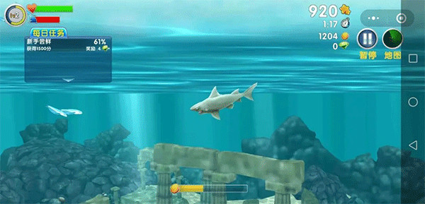 3、熟悉操作后,玩家将控制鲨鱼在海洋中进行捕食;