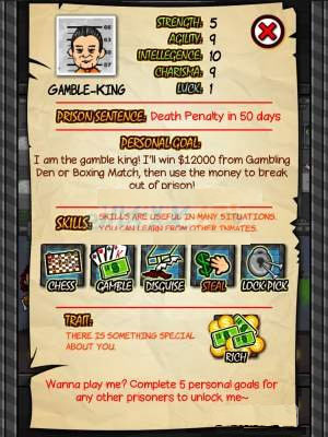 个人目标(重要):每名囚犯的个人目标均不同,有容易也有困难的,详细请在选择时查看